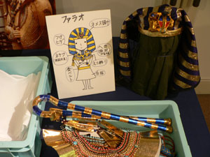 ヒエログリフで名前を書いたりできるのですが、ファラオなどの衣装を着用できる中近東の民族衣装体験コーナーがあります。ツタンカーメン+ナイルなふくっぽいですよ!